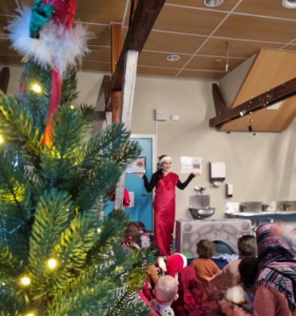 Det var en utrolig fin dag. Vi hadde ansiktsmaling på formiddagen på småbarnsavdelingene, og barna koste seg med frilek mens noen voksne forberedet samlingen på Nordlys. Når klokka ble 10.30 samlet alle avdelingene seg på Nordlys og alle barna satte seg fint, nysgjerrige på hva slags opplegg det skulle bli. Det var jo en liten nisse, en skål, en stor skje og en bru på "scenen"!