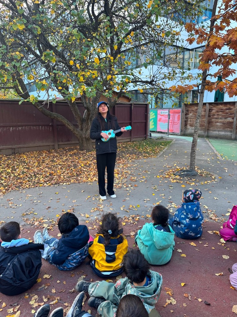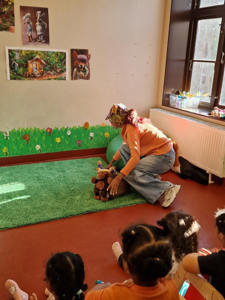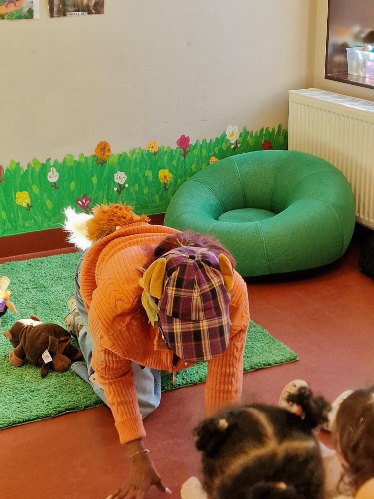 Denne uken fikk barna en helt spesiell og felles kulturell opplevelse da vi voksne dramatiserte Hakkebakkeskogen! Vi kledde oss ut som karakterene barna kjenner godt fra boka blant annet Klatremus, Mikkel Rev og Brumlemann. En voksen leste en lett og tilpasset fortelling fra boka, mens de andre voksne dramatiserte kjente scener fra historien. Underveis tok Klatremus frem gitaren og sang kjente sanger fra eventyret, og barna fulgte spent med. De lo, ropte og levde seg inn i fortellingen med hele seg. Etter forestillingen var stemningen høy, alle barna kom opp på scenen og danset, enten alene eller sammen med andre. Det var mye latter, glede og energi i rommet.